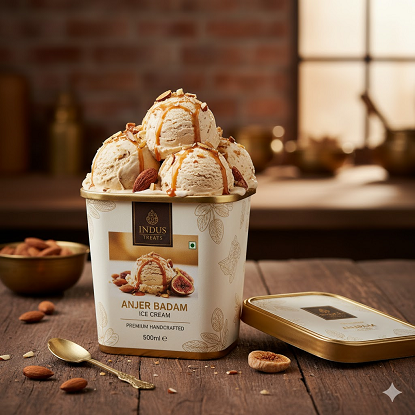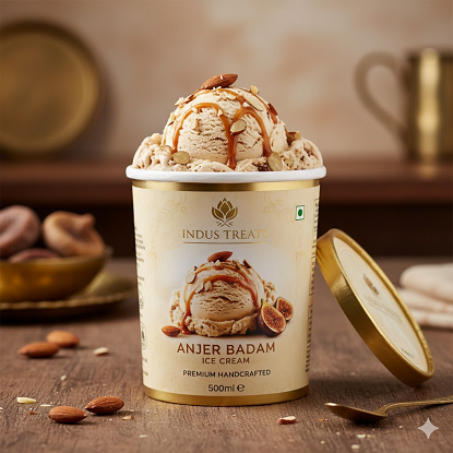 డోడ్లా నుండి వచ్చిన 500ml టబ్లో ఒక క్లాసిక్ ఇండియన్ స్వీట్ ఫ్లేవర్ కాంబినేషన్ ఉంది, ఇది దాని పోషక విలువలు మరియు గొప్ప రుచికి ఎంతో విలువైనది. ఫ్లేవర్ ప్రొఫైల్ మరియు పదార్థాలు బేస్: రిచ్, ఫుల్-డైరీ ఫ్రోజెన్ బేస్, ఇది సాంప్రదాయ ఇండియన్ కుల్ఫీ (దట్టమైన మరియు నెమ్మదిగా కరిగే) లేదా ప్రీమియం ఐస్ క్రీం (కొరడాతో మరియు మృదువైనది) కావచ్చు. రుచుల యొక్క సాంప్రదాయ స్వభావాన్ని బట్టి, ఇది రిచ్, క్రీమీ టెక్స్చర్ కోసం లక్ష్యంగా పెట్టుకుంది. అంజీర్ (అంజీర్): ఇది ప్రధాన స్వీటెనర్ మరియు టెక్స్చరల్ ఎలిమెంట్. అంజూరపు రుచి వెచ్చగా ఉంటుంది, సహజంగా తీపిగా ఉంటుంది మరియు తరచుగా ఎండిన అంజూరపు పండ్ల నుండి వస్తుంది, వీటిని తరిగిన లేదా పురీ చేసి బేస్లో కలుపుతారు, ఇది మృదువైన, నమలగల మూలకాన్ని అందిస్తుంది. బాదం (బాదం): మెత్తగా తరిగిన లేదా ముక్కలు చేసిన బాదంపప్పులను డెజర్ట్లో ఉదారంగా కలుపుతారు. ఈ గింజలు సూక్ష్మమైన, వెన్న రుచిని మరియు సంతృప్తికరమైన క్రంచ్ను అందిస్తాయి, ఇది మృదువైన ఐస్ క్రీం లేదా కుల్ఫీతో అందంగా విభేదిస్తుంది. సువాసన: రుచి ప్రొఫైల్ సూక్ష్మంగా మసాలాగా ఉంటుంది, తరచుగా ఏలకులు (ఎలైచి) లేదా కుంకుమపువ్వు (కేసర్) యొక్క సూచనతో ఉంటుంది, ఇది అంజీర్ మరియు బాదం యొక్క గొప్పతనాన్ని పూర్తి చేస్తుంది. ప్యాకేజింగ్ మరియు వడ్డించడం