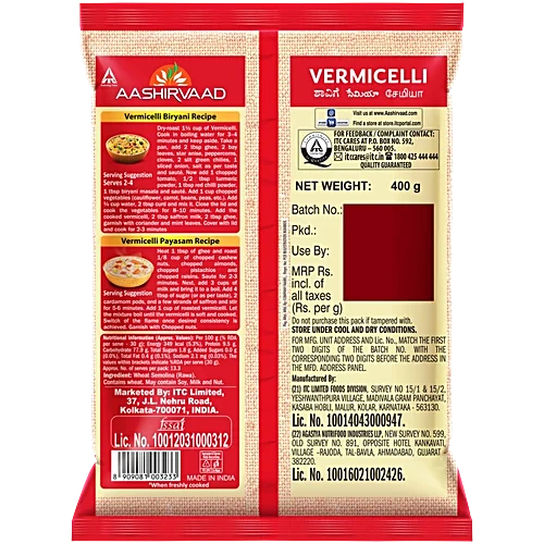 ఆశీర్వాద వెర్మిసెల్లి, గోధుమలతో తయారు చేయబడింది, మైదా లేదు, 400 గ్రా