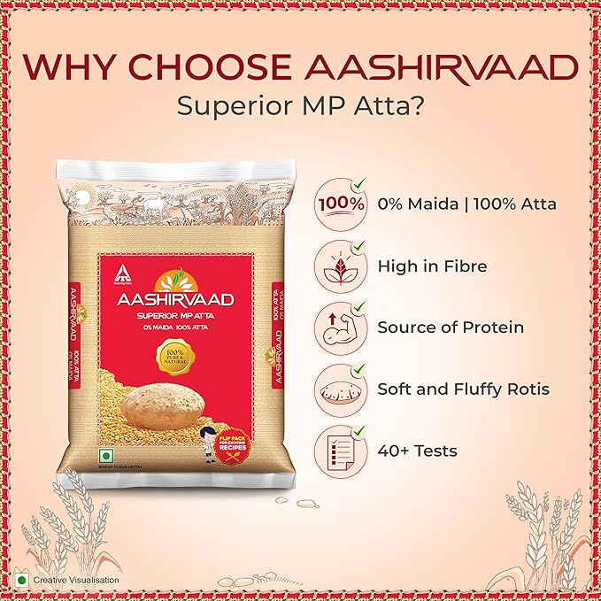 🇮🇳 భారతదేశపు నం.1 అట్టా: ఆశీర్వాద Superior MP Atta ఒక ప్రత్యేకమైన 4-దశల ప్రక్రియలో తయారవుతుంది, ఇది 100% స్వచ్ఛమైన గోధుమ పిండిగా ఉండేందుకు హామీ ఇస్తుంది.