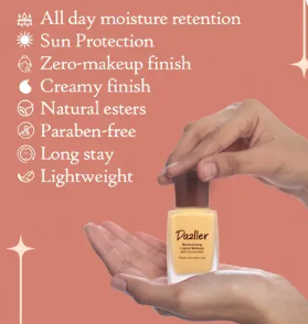 బ్రాండ్: డాజ్లర్మోడల్ పేరు: మాయిస్చరైజింగ్ లిక్విడ్ మేకప్ (2 × 27 మి.లీ)షేడ్: బిస్కోటిమొత్తం పరిమాణం: 54 మి.లీ (27 మి.లీ × 2)