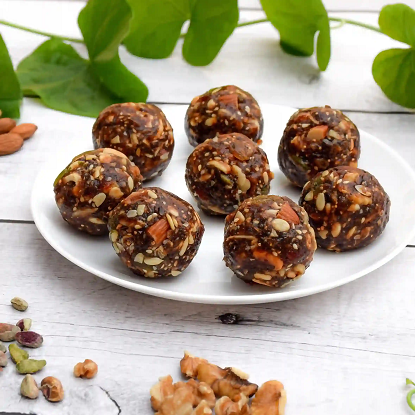 డ్రై ఫ్రూట్ లడ్డూలు ముఖ్యమైన విటమిన్లు మరియు ఖనిజాలకు గని లాంటివి. ఇందులో ఉండే పోషకాలు వాడిన డ్రై ఫ్రూట్స్ను బట్టి ఉంటాయి. సాధారణంగా ఒక లడ్డూలో ఉండేవి: