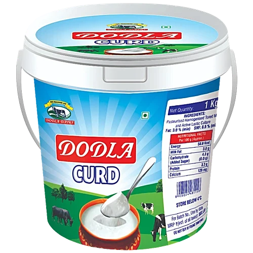 డొడ్లా శుద్ధమైన, నాణ్యమైన పాస్తురైజ్డ్ పాలతో తయారైన తాజా మరియు ఆరోగ్యకరమైన పెరుగు మీకు అందిస్తుంది. ప్రత్యేకంగా ఎంచుకున్న లాక్టిక్ యాసిడ్ బ్యాక్టీరియా శృంఖలాలతో ఇది తయారు చేయబడుతుంది. ఇది పరిశుభ్రతతో ప్రాసెస్ చేయబడింది మరియు హానికరమైన ప్రిజర్వేటివ్స్ ఏవీ ఉండవు. మందంగా, క్రీమీగా ఉండే డొడ్లా పెరుగు మృదువుగా మెరిసే నిర్మాణాన్ని కలిగి ఉంటుంది. డొడ్లా పెరుగు పాలలోని సకల పోషక విలువలను కలిగి ఉంటుంది. ఈ పెరుగు అవసరమైన మోతాదులో ప్రోటీన్లు, కార్బొహైడ్రేట్లు, కొవ్వులు, కాల్షియం, ఫాస్ఫరస్, మాగ్నీషియం, జింక్, అయోడిన్ మరియు విటమిన్లను కలిగి ఉంటుంది. ఈ పెరుగు బకెట్లు, కప్పులు మరియు పౌచ్ల వంటివిగా వివిధ రకాల ప్యాకింగ్లలో లభిస్తుంది. వినియోగదారుడు అవసరానికి అనుగుణంగా ఎంపిక చేసుకోవచ్చు.