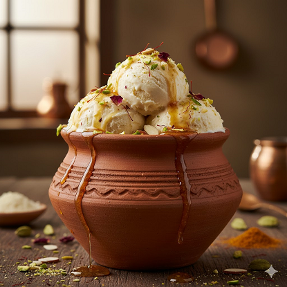 భారత ఉపఖండం నుండి వచ్చిన సాంప్రదాయ ఘనీభవించిన పాల డెజర్ట్, ప్రత్యేకంగా దాని తయారీ మరియు వడ్డించే పాత్ర ద్వారా విభిన్నంగా ఉండే కుల్ఫీ రకం. పేరు: దీనికి "మట్కా" అనే పదం నుండి దాని పేరు వచ్చింది, ఇది సాంప్రదాయకంగా దీనిని తయారు చేసి వడ్డించే చిన్న, గ్రామీణ, మట్టి పాత్ర లేదా మట్టి కుండ. మట్టి కుండలో వడ్డించడం రుచిని పెంచుతుంది మరియు దానిని ప్రత్యేకంగా చల్లగా ఉంచుతుంది. ఆకృతి మరియు స్థిరత్వం: సాధారణ ఐస్ క్రీం వలె కాకుండా, కుల్ఫీ మిశ్రమాన్ని చిలికించరు, దీని ఫలితంగా చాలా దట్టమైన మరియు క్రీమీయర్ ఆకృతి వస్తుంది. ఇది చాలా నెమ్మదిగా కరుగుతుంది. కావలసినవి & రుచి: పాలు తగ్గి చిక్కబడే వరకు పూర్తి కొవ్వు పాలు మరియు క్రీమ్ (మలై) ను నెమ్మదిగా ఉడికించడం ద్వారా దీనిని తయారు చేస్తారు, ఇది చక్కెరను పంచదార పాకంలా చేస్తుంది మరియు దానికి ప్రత్యేకమైన, గొప్ప, వండిన పాల రుచిని ఇస్తుంది. ఈ మిశ్రమం సాధారణంగా గొప్ప, సుగంధ భారతీయ సుగంధ ద్రవ్యాలు మరియు గింజలతో నింపబడి ఉంటుంది, వీటిలో తరచుగా కుంకుమపువ్వు (కేసర్), ఏలకులు (ఎలైచి), పిస్తాపప్పులు, బాదం మరియు జీడిపప్పులు ఉంటాయి.