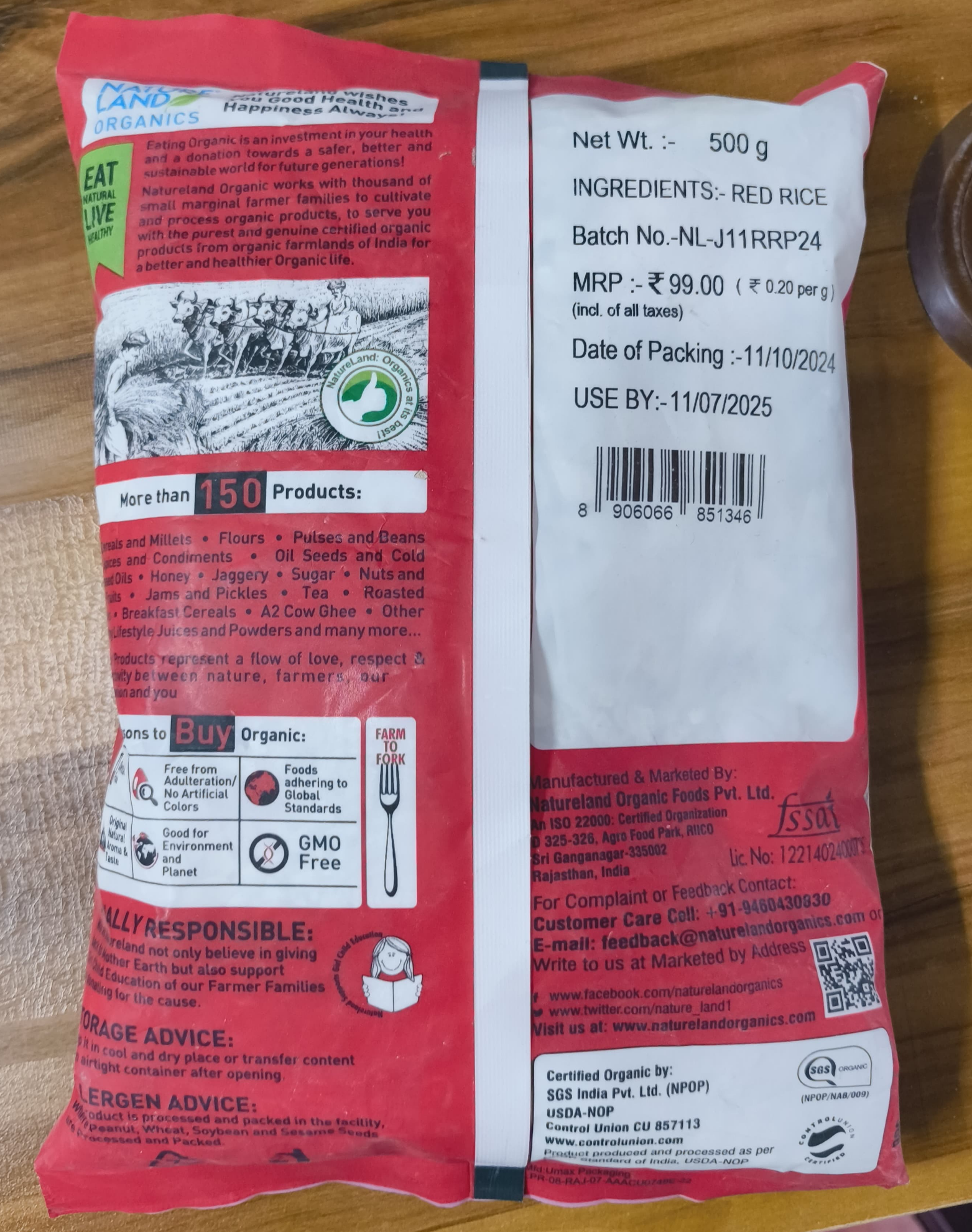 నేచర్ ల్యాండ్ ఆర్గానిక్స్ (రెడ్ రైస్ POHA)-500GM
