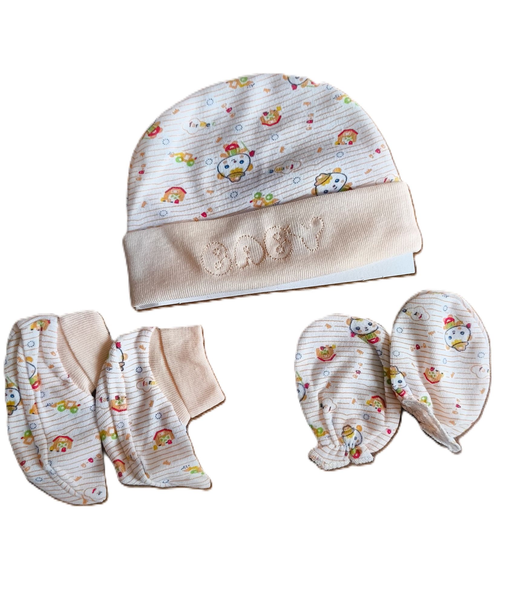 ఈ సెటులో బేబీ క్యాప్, బూటీలు మరియు మిట్టెన్స్ ఉన్నాయి — అబ్బాయిలకు మరియు అమ్మాయిలకు సరిపోయేలా రూపొందించబడింది.