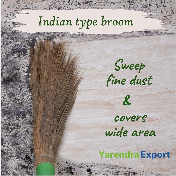 దృఢమైన పదార్థం: ఈ చెత్తదూకుడు నాణ్యమైన గడ్డితో తయారు చేయబడింది, ఇది సంప్రదాయ బూములతో పోలిస్తే 50% తక్కువ భూసా (గడ్డి తొలకరి) విడుదల చేస్తుంది. ఇది అధిక శుభ్రతను అందిస్తుంది మరియు సులభంగా పట్టుకునే ప్లాస్టిక్ హ్యాండిల్ కలిగి ఉంటుంది.