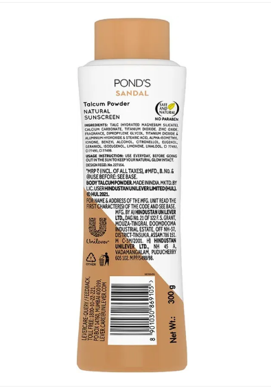పాండ్స్ శాండల్ రేడియన్స్ టాల్కమ్ పౌడర్ విత్ నేచురల్ సన్స్క్రీన్ అనేది మీ చర్మాన్ని తాజాగా, పొడిగా మరియు రోజంతా సహజంగా ప్రకాశవంతంగా ఉంచడానికి రూపొందించబడిన రిఫ్రెషింగ్ బాడీ టాల్క్. గంధపు చెక్క యొక్క మంచితనంతో నిండిన ఇది, మీ ఇంద్రియాలను ఉత్తేజపరిచే ఓదార్పునిచ్చే సువాసనను అందిస్తుంది, అదే సమయంలో చెమట మరియు శరీర దుర్వాసనను నియంత్రించడంలో సహాయపడుతుంది. దీని సూక్ష్మ టాల్క్ కణాలు అదనపు తేమను గ్రహిస్తాయి, వేడి మరియు తేమతో కూడిన పరిస్థితులలో కూడా చర్మాన్ని మృదువుగా, మృదువుగా మరియు సౌకర్యవంతంగా ఉంచుతాయి. ఈ పౌడర్ను ప్రత్యేకంగా చేసేది టైటానియం డయాక్సైడ్ మరియు జింక్ ఆక్సైడ్ వంటి సహజ సన్స్క్రీన్ ఏజెంట్ల ఉనికి, ఇవి హానికరమైన సూర్య కిరణాల నుండి రక్షణ పొరను అందిస్తాయి, టానింగ్ మరియు నిస్తేజాన్ని తగ్గించడంలో సహాయపడతాయి. క్రమం తప్పకుండా ఉపయోగించడం వల్ల చర్మం ప్రకాశవంతంగా, మాట్టేగా మరియు సూక్ష్మమైన ప్రకాశంతో మెరుస్తూ ఉంటుంది. గంధపు చెక్క ఎసెన్స్ దీర్ఘకాలిక తాజాదనాన్ని ఇవ్వడమే కాకుండా దాని ప్రశాంతత మరియు చర్మ-స్నేహపూర్వక లక్షణాలతో సాంప్రదాయ సంరక్షణ స్పర్శను కూడా ఇస్తుంది. రోజువారీ ఉపయోగం కోసం పర్ఫెక్ట్, పాండ్స్ శాండల్ రేడియన్స్ టాల్క్ అన్ని చర్మ రకాలకు అనుకూలంగా ఉంటుంది మరియు స్నానం చేసిన తర్వాత, ఆరుబయట అడుగు పెట్టే ముందు లేదా మీరు చల్లగా మరియు నమ్మకంగా ఉండాలనుకునే ఏ సమయంలోనైనా దీనిని ఉపయోగించవచ్చు. ఇది సువాసన మరియు రక్షణ యొక్క ద్వంద్వ ప్రయోజనాలను మిళితం చేస్తుంది, ఇది రోజువారీ వస్త్రధారణకు అనువైన ఎంపికగా చేస్తుంది.