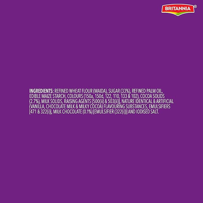 చాక్లెట్ ప్రియులకు ఒక నిధి, క్రంచ్ మిగులు మధ్య ప్యాక్ చేయబడి, సున్నితమైన చక్కెర స్ఫటికాలతో చల్లబడుతుంది మృదువైన, కరిగించిన చాక్లెట్ మీ నోటిని తీపి, ఆనందకరమైన రుచితో నింపుతుంది, నోరూరించే అనుభవం కోసం క్షణాల్లో తీపిని జోడించడానికి మీ సరదా బృందంతో ఈ చాక్లెట్ బిస్కెట్లను ఆస్వాదించండి చాక్లెట్ తగినంతగా పొందలేని వ్యక్తుల కోసం బ్రిటానియా బోర్బన్ తయారు చేయబడింది బ్రిటానియాపై నమ్మకం మరియు స్వచ్ఛమైన పదార్థాలు ఈ బిస్కెట్లను అందరికీ ఇష్టమైనవిగా చేశాయి