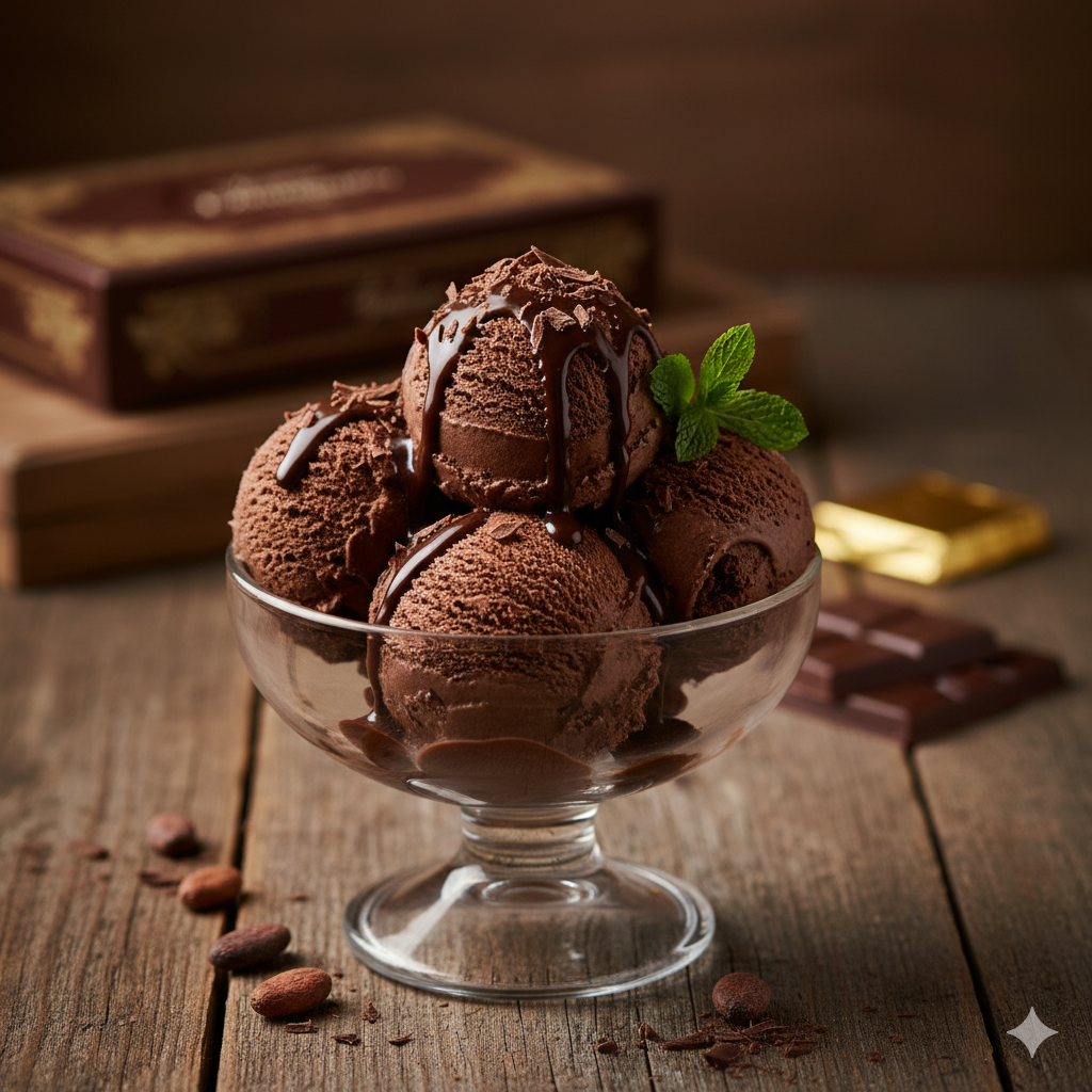 ప్రాథమిక రుచి: నిర్వచించే లక్షణం అధిక-నాణ్యత బెల్జియన్ చాక్లెట్ వాడకం. ఇది సాధారణంగా ప్రామాణిక చాక్లెట్ ఐస్ క్రీంలతో పోలిస్తే మరింత సూక్ష్మమైన, సంక్లిష్టమైన మరియు లోతైన కోకో రుచిగా అనువదిస్తుంది, తరచుగా రిచ్, డార్క్ లేదా చేదు తీపి ప్రొఫైల్ వైపు మొగ్గు చూపుతుంది.