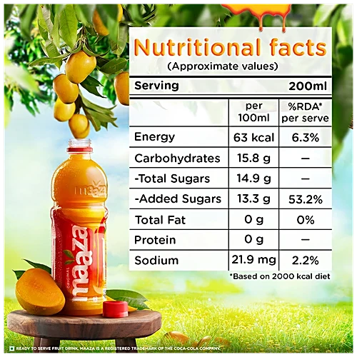 మాజా మామిడి డ్రింక్ మీ ఒత్తిడిని తగ్గించేందుకు, ఆనందాన్ని పెంచేందుకు మంచి ఎంపిక. ఇది నిజమైన ఆల్ఫోన్సో మామిడి పల్పుతో తయారు చేయబడిన స్వీట్, దట్టమైన మరియు రుచికరమైన పానీయం.