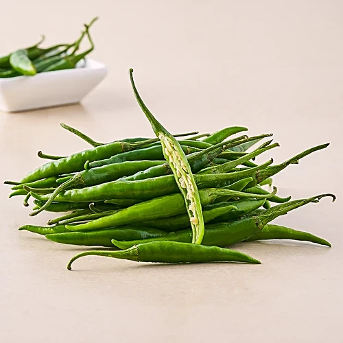 ఆకుపచ్చని పొడవు మరియు మధ్యస్థ మిరపకాయలు భారతీయ వంటకాల్లో ముఖ్యమైన పదార్థాలు, ఇవి వంటకాలకు మండుతున్న వేడిని మరియు ప్రత్యేకమైన రుచిని జోడిస్తాయి. "హరి మిర్చ్" అని పిలువబడే ఇవి మసాలా స్థాయిలలో మారుతూ ఉంటాయి మరియు దేశవ్యాప్తంగా ప్రాంతీయ వంట శైలులకు అంతర్భాగంగా ఉంటాయి. కారపు కూరల నుండి టాంజీ చట్నీలు మరియు రుచికరమైన బిర్యానీల వరకు, ఈ మిరపకాయలను రుచిని పెంచడానికి పూర్తిగా, తరిగిన లేదా చూర్ణం చేస్తారు. దక్షిణ భారతదేశంలో, వంటకాలకు జోడించే ముందు వాటి సుగంధ నూనెలను విడుదల చేయడానికి వాటిని తరచుగా నూనెలో టెంపర్ చేస్తారు, అయితే ఉత్తర భారతదేశంలో, వాటిని స్టఫ్ చేసి వేయించాలి. పచ్చిమిరపకాయలు కేవలం మసాలా దినుసు మాత్రమే కాదు, భారతీయ వంటశాలలలో సాంస్కృతిక మరియు పాక మూలస్తంభం.