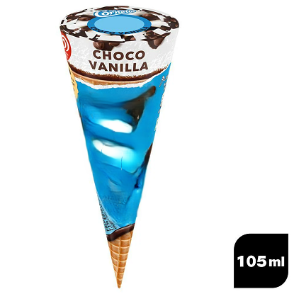 కోన్‌లో ఉత్పత్తి రకం ఐస్ క్రీమ్/ఘనీభవించిన డెజర్ట్ ప్రాథమిక రుచి వనిల్లా కాంపోనెంట్స్ వనిల్లా ఐస్ క్రీమ్/సాఫ్ట్ సర్వ్, క్రిస్పీ కోన్ (ఊకదంపుడు లేదా షుగర్ కోన్) అలెర్జీ కారకం సమాచారం సాధారణంగా కలిగి ఉంటుంది: పాలు, గోధుమ (గ్లూటెన్) మరియు సోయా. సాధారణ సర్వింగ్ పరిమాణం మారుతూ ఉంటుంది, సాధారణంగా 90 ml నుండి 120 ml (లేదా 70g నుండి 120g)