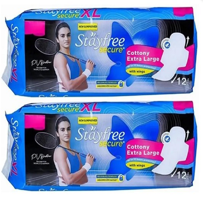 స్టేఫ్రీ సెక్యూర్ కాటనీ ఎక్స్‌ట్రా లార్జ్ XL ( 12+12 ప్యాడ్‌లు ) శానిటరీ ప్యాడ్ (2 ప్యాక్)