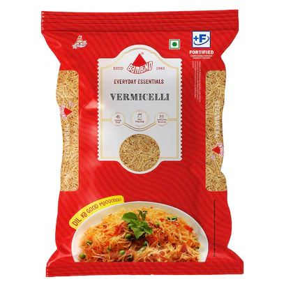 సేమియా, వెర్మిసెల్లి అని కూడా పిలుస్తారు, ఇది భారతీయ వంటశాలలలో విస్తృతంగా ఉపయోగించే బహుముఖ పదార్థం. అధిక నాణ్యత గల గోధుమలతో తయారు చేయబడిన ఈ సన్నని తంతువులను రకాన్ని బట్టి కాల్చిన లేదా వేయించని రూపంలో తయారు చేయవచ్చు మరియు రుచికరమైన భోజనంగా త్వరగా వండవచ్చు. 1 కిలోల ప్యాక్ సైజుతో, ఇది కుటుంబాలకు మరియు పెద్ద మొత్తంలో వంట అవసరాలకు అనువైనది. మీరు సేమియా పాయసం (ఖీర్) వంటి తీపి వంటకాలు, ఉప్మా, పులావ్ వంటి రుచికరమైన వంటకాలు మరియు వినూత్న స్నాక్స్లను కూడా తయారు చేసుకోవచ్చు.
