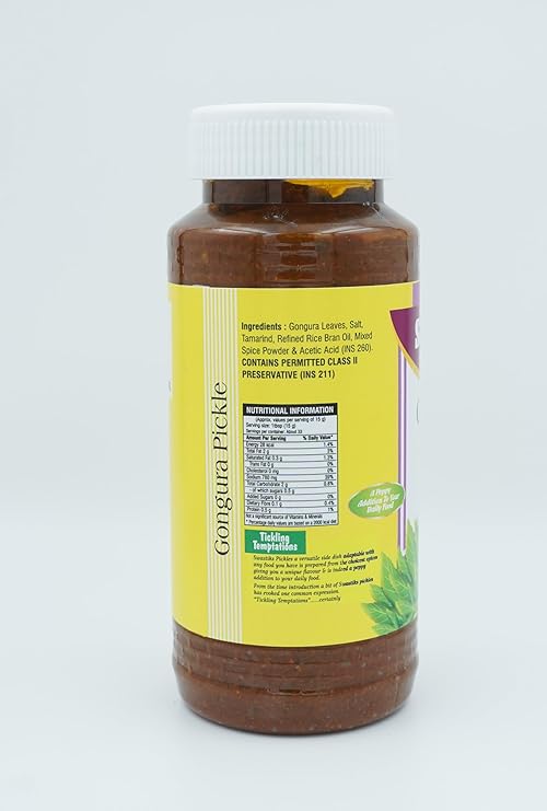 తాజా గోంగూర ఆకులతో, వంటసాంప్రదాయానికి అనుగుణంగా తయారైన స్వస్తిక్స్ గోంగూర పచ్చడి ప్రతి ఆహారానికి ప్రత్యేక రుచి తీసుకువస్తుంది. ఈ పచ్చడి ఇంటి స్టైల్లో, మాతృస్వాదంతో తయారవుతుంది – పూర్తిగా శాకాహారంగా, గ్లూటెన్-రహితంగా ఉంటుంది.