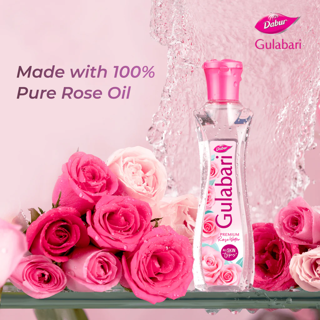 Discover the daily skincare savior you've been searching for with Dabur Gulabari Rose Water. Infused with the essence of pure roses, this gentle yet powerful formula offers a multitude of benefits for your skin. Acting as a non-alcoholic toner, it cleanses, tones, and moisturizes, leaving your skin radiant, acne-free, and youthful. Say goodbye to impurities as it purifies, removes makeup, and dirt, while protecting against bacterial infections. With its pH-balancing properties, it restores harmony to your skin, offering a calming effect on acne. Experience the rejuvenating power of rose water, unlocking naturally glowing and radiant skin with each use. Make Dabur Gulabari Rose Water an essential part of your skincare routine and embrace the beauty of rose-infused skincare.