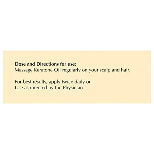 It is a daily hair vitalizer which protects the hair from day-to-day problems caused by environmental stressors like pollution, UV rays, heat, and dust. Kertone Oil helps in controlling dandruff, revitalizing the hair, nourishing the scalp, providing natural shine and luster to the hair and maintaining the natural blackness of the hair. Massage Keratone Oil twice a day on your hair and scalp for best results or as directed by the physician.